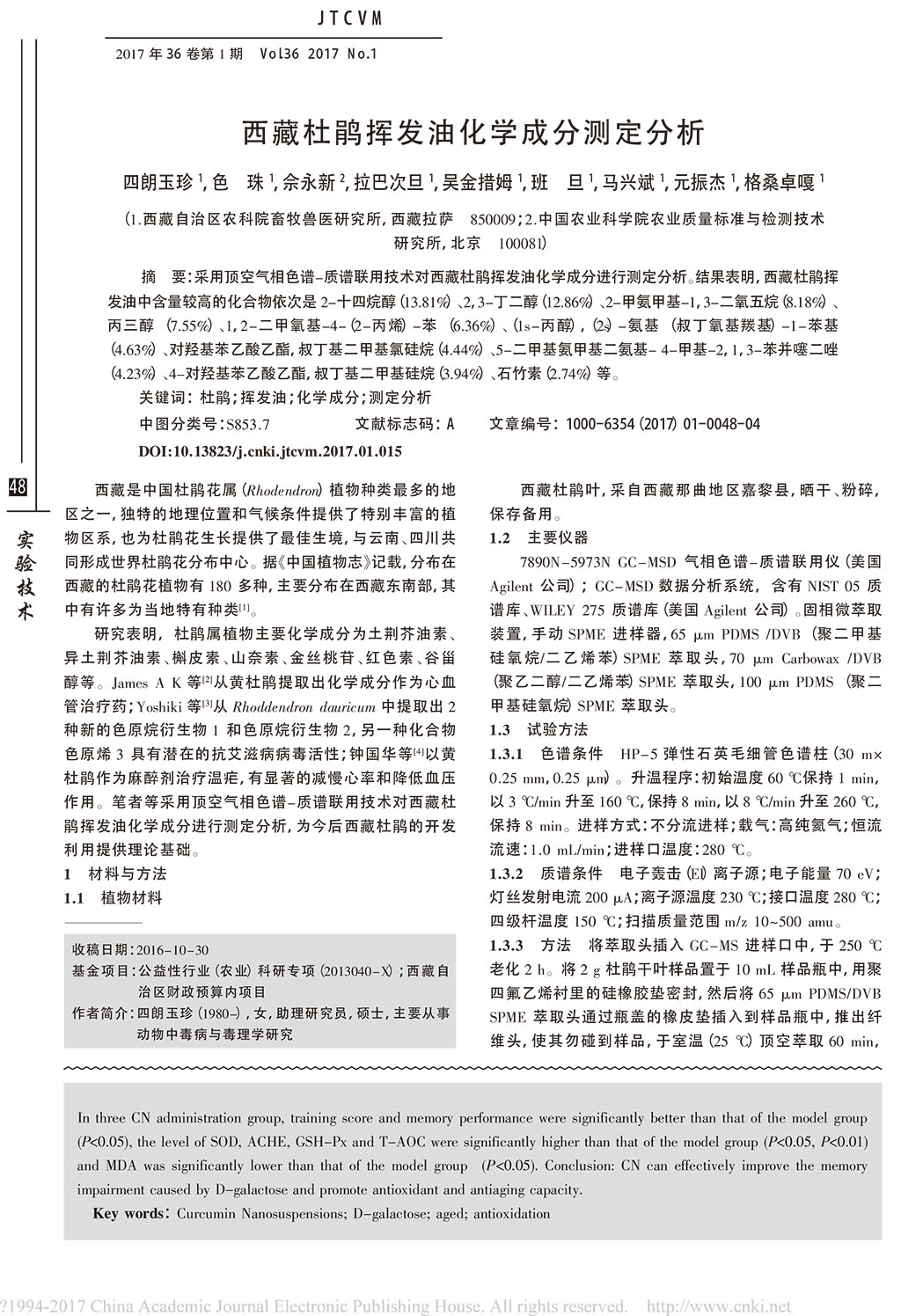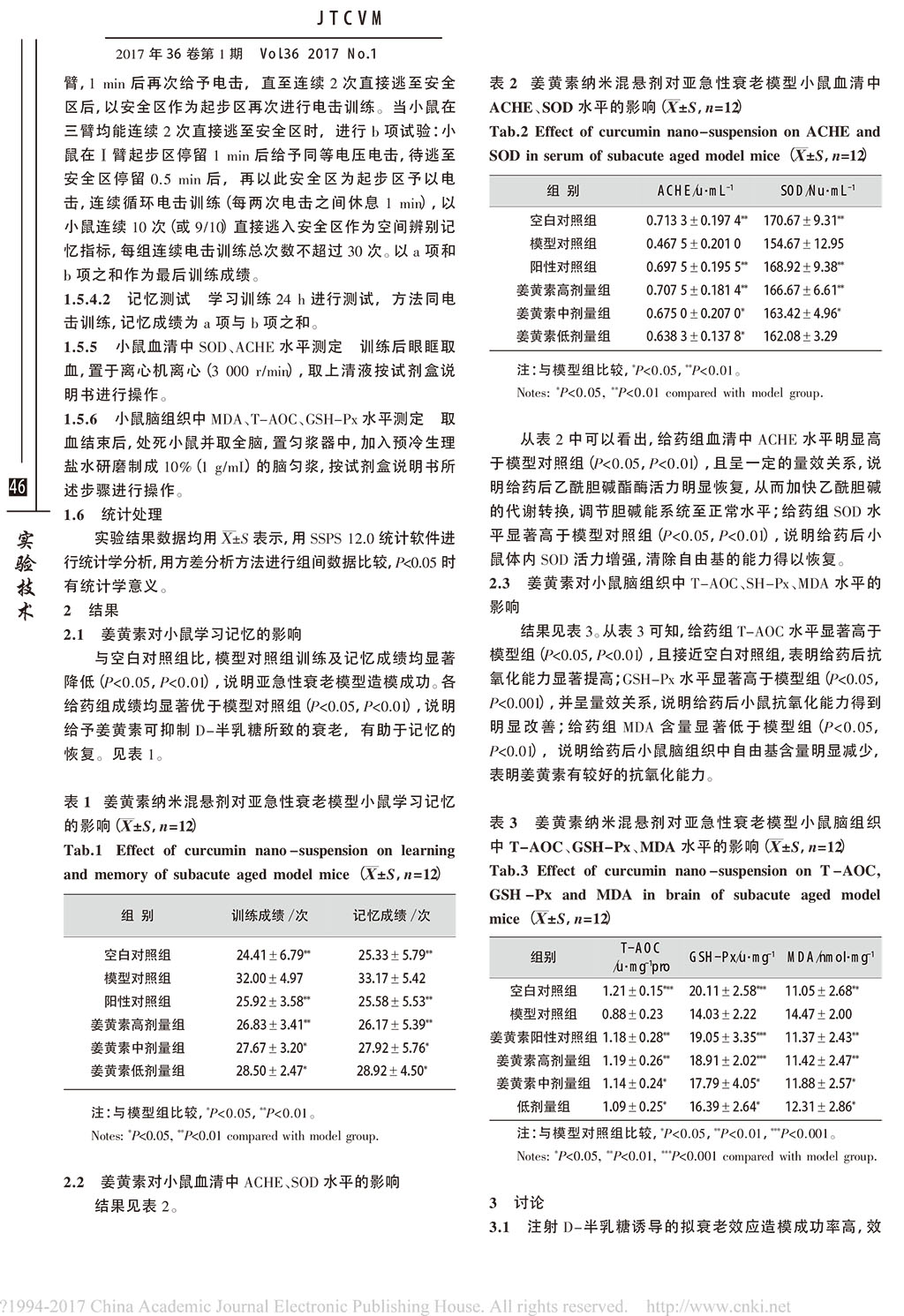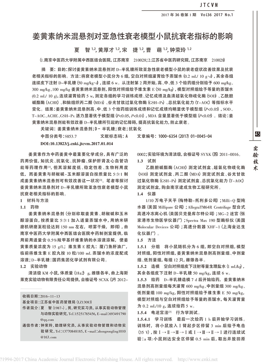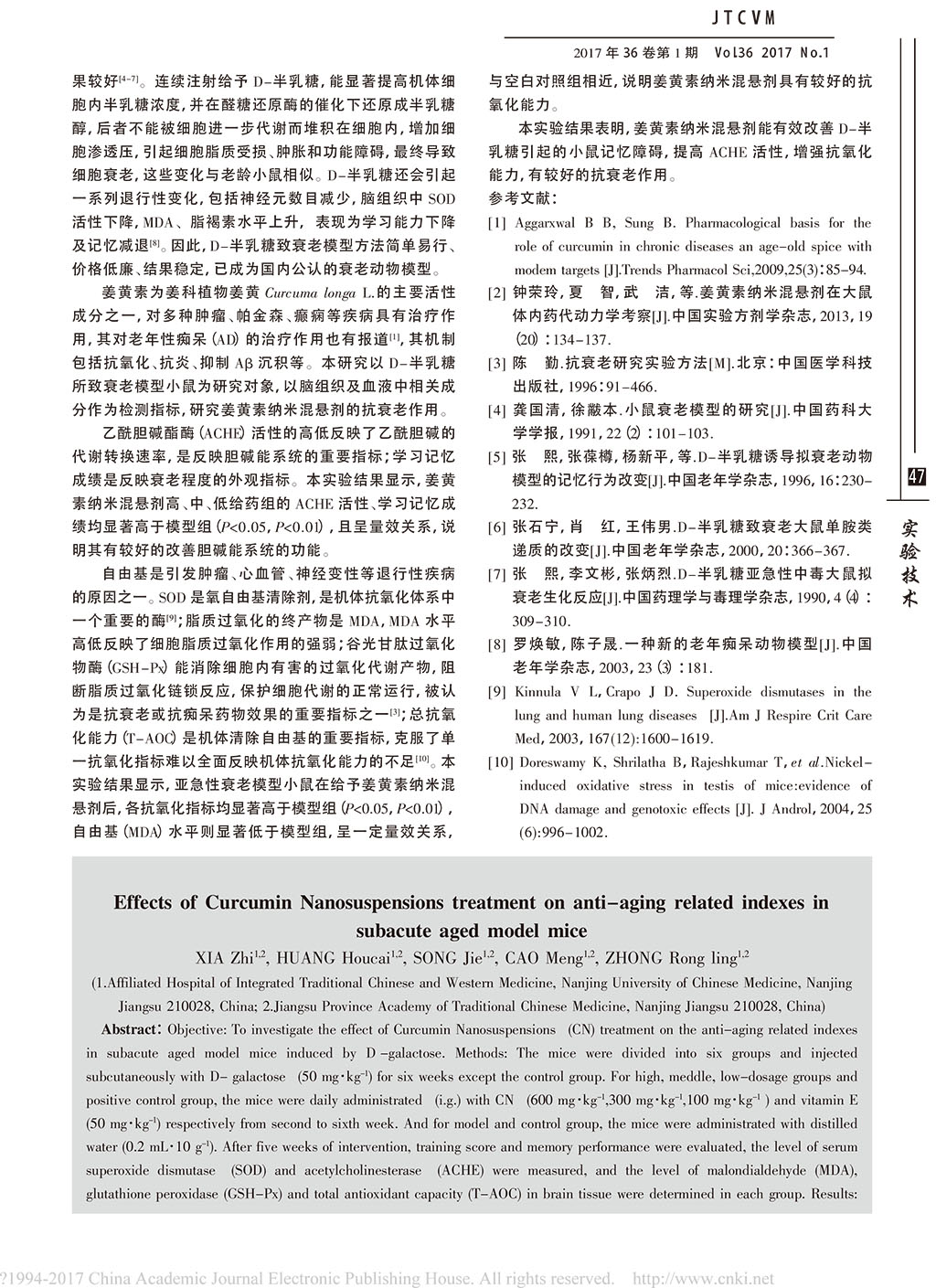 姜黃素納米混懸劑對亞急性衰老模型小鼠抗衰老指標(biāo)的影響_夏智