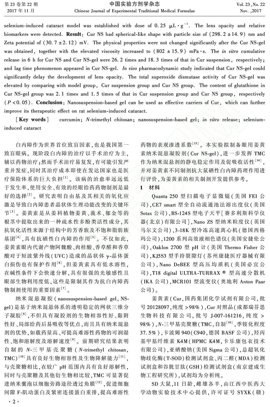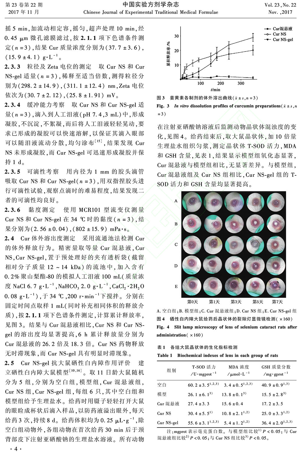 姜黃素眼用納米混懸凝膠劑對大鼠硒性白內障的治療作用_李翔_劉亞麗_張鵬_季苗苗_
