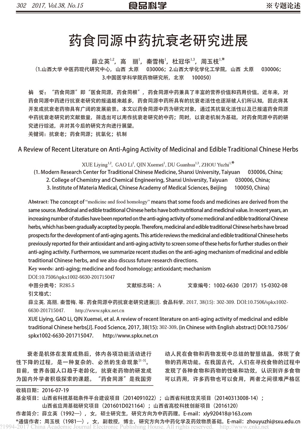 藥食同源中藥抗衰老研究進展_薛立英